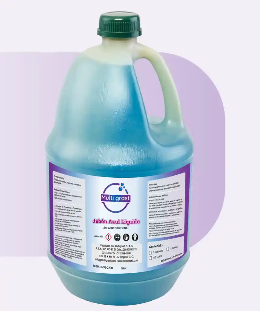 Jabón azul líquido Multigrast para limpieza de tus pisos y baldosines, cerámicas, azulejos y muebles de baño, haciendo el ambiente más acogedor en tu hogar.