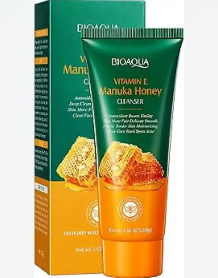 Este es un limpiador facial de miel de Manuka con vitamina E de Bioaqua. Sus características clave incluyen: Antioxidante: Aumenta la vitalidad de la piel. Limpieza profunda: Produce una espuma rica y densa que limpia la suciedad y los restos de maquillaje. Reparación e hidratación: Formulado con miel de Manuka y vitamina E para nutrir e hidratar la piel. Resultados: Ayuda a aclarar las manchas oscuras y el acné, dejando la piel más suave y tersa. Contenido neto: 100g (3.52 oz).