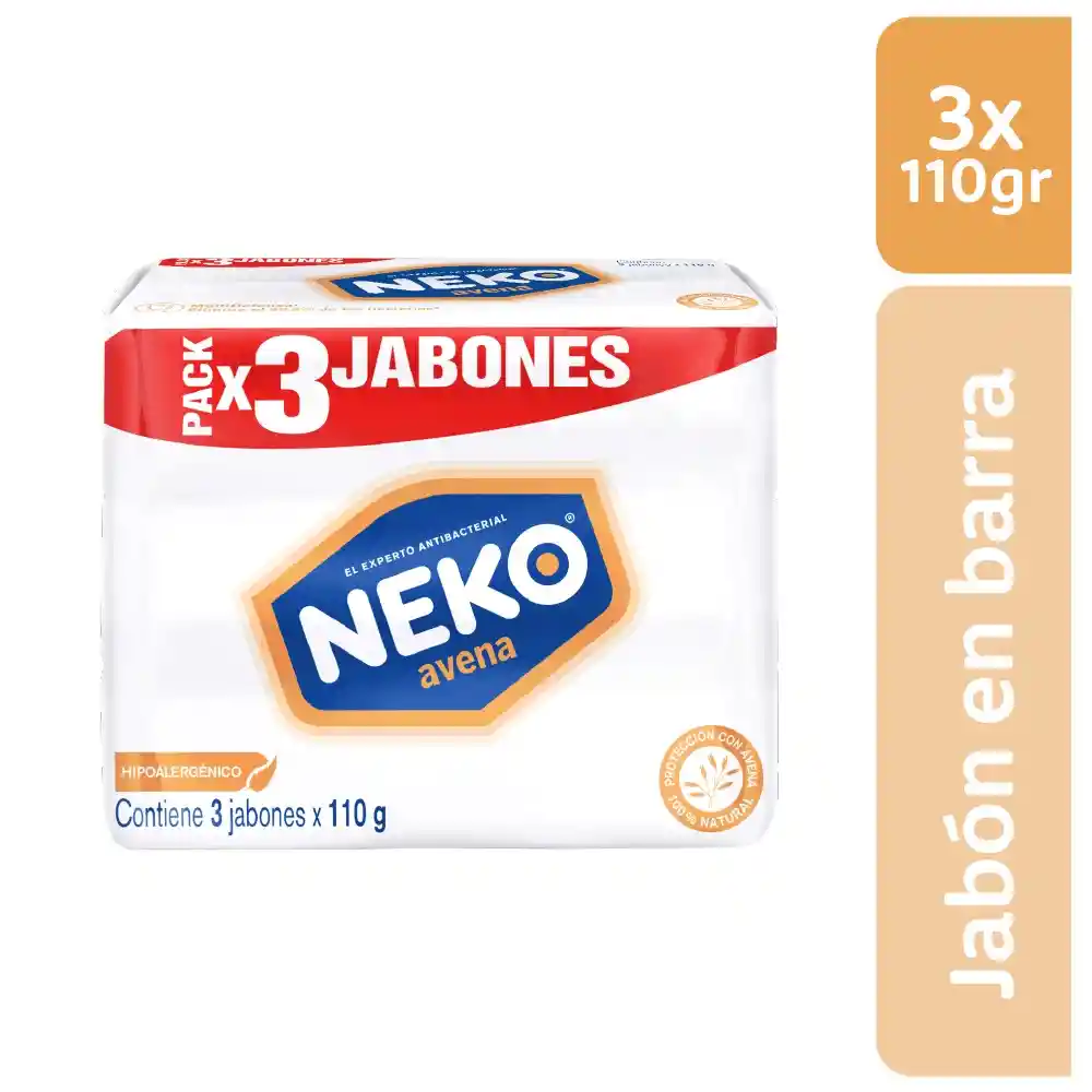 🌾🧼 Jabón Neko en Barra Antibacterial Avena x3 Und (110g c/u) Jabones en barra con avena que brindan limpieza efectiva y protección antibacterial, ayudando a cuidar la piel diariamente. ✔ Contenido: Pack x3 unidades (110g cada uno) ✔ Con avena ✔ Protección antibacterial ✔ Limpieza suave y efectiva ✔ Ayuda a mantener la piel hidratada 💙 Ideal para uso diario ✨ Piel limpia, suave y protegida ⚠️ Uso externo ⚠️ Evitar contacto con los ojos