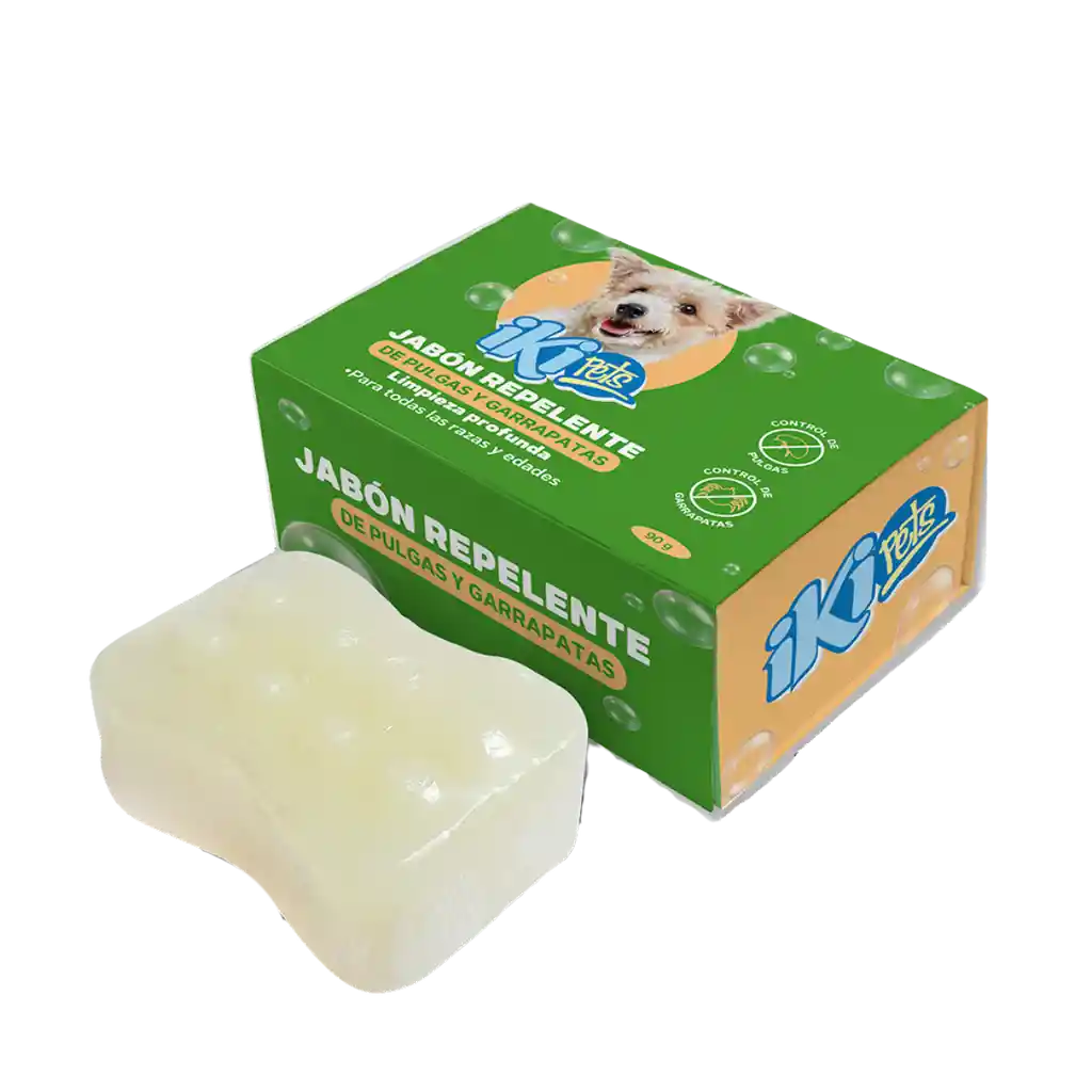 Jabón Repelente de Pulgas y Garrapatas para Perros – Protección Segura 90Gr Cuida a tu perro de manera natural con este jabón repelente de pulgas y garrapatas, formulado para proteger eficazmente a tu mascota contra estos molestos parásitos. Con un peso de 90 gramos, este jabón es ideal para el uso regular, brindando una limpieza profunda y un aroma fresco, mientras repele y elimina pulgas y garrapatas. Características Principales: Protección Contra Pulgas y Garrapatas: Repele y elimina estos parásitos, manteniendo a tu perro limpio y libre de infestaciones. Fórmula Segura y Efectiva: Compuesto por ingredientes que cuidan la piel de tu mascota mientras le brindan protección. Aroma Refrescante: Deja un agradable aroma en el pelaje de tu perro después de cada baño. Tamaño Práctico de 90 Gramos: Perfecto para el uso en perros de cualquier tamaño, fácil de almacenar y usar.