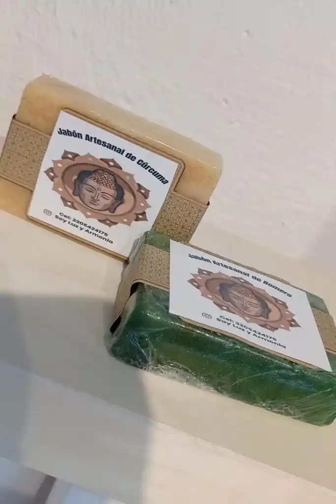 Jabón para uso diario. Perfumado con ingredientes naturales como cúrcuma, romero o palo santo. Apto para todo tipo de piel.
