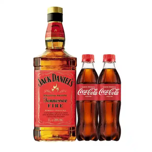 Jack Daniel'S Whisky Tenesse Fire 750 Ml + Coca Cola Gaseosa Original Pack Con 2 Unidades De 600 Ml C/U. .. .