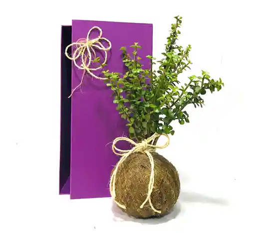 Bonsai Jade Kokedama con caja pasta dura reutilizable.