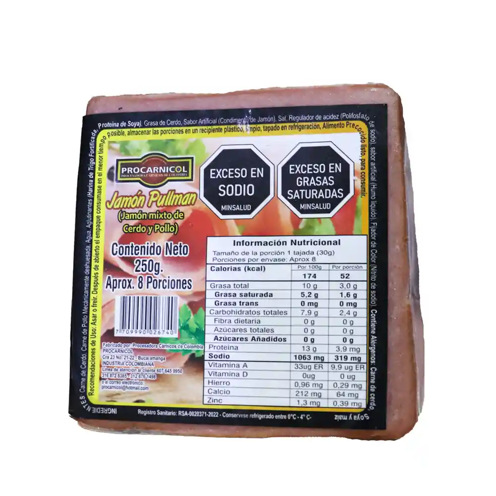 Jamón tajado Pullman mixto de cerdo y pollo, Procarnicol X250 GRS
