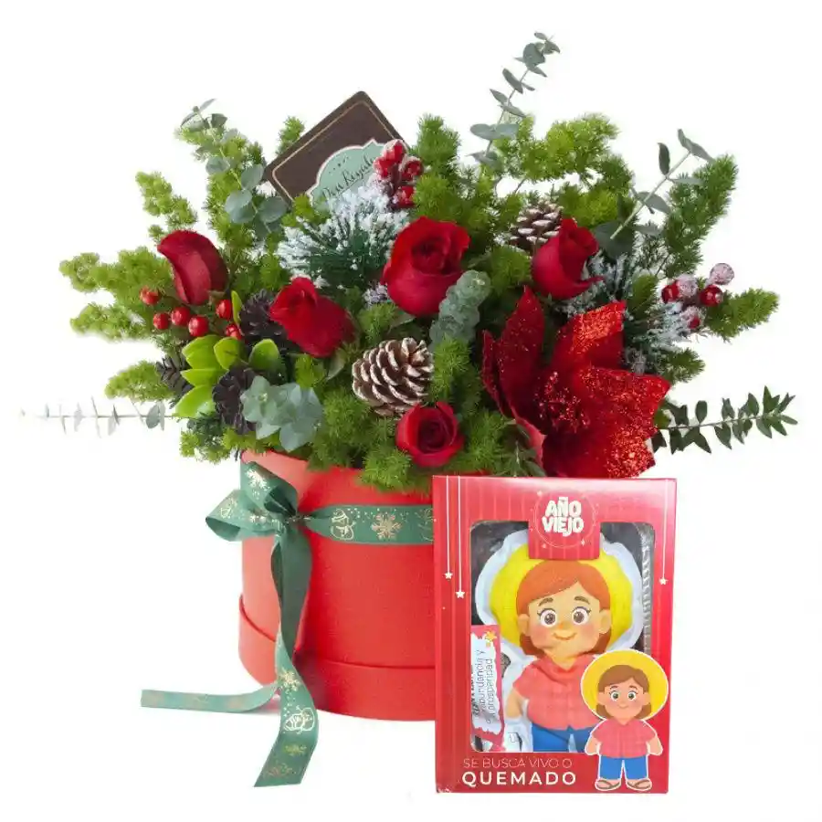 caja de 10 rosas rojas con follaje mas un año viejo Nota: La flor puede ser sustituida dependiendo la disponibilidad de color y del producto “Mensaje Personalizado” máximo de 30 caracteres (Dejar el mensaje en el chat, los comentarios no se previsualizan para la tienda por lo que si se dejan allí no podrá ser incluido).