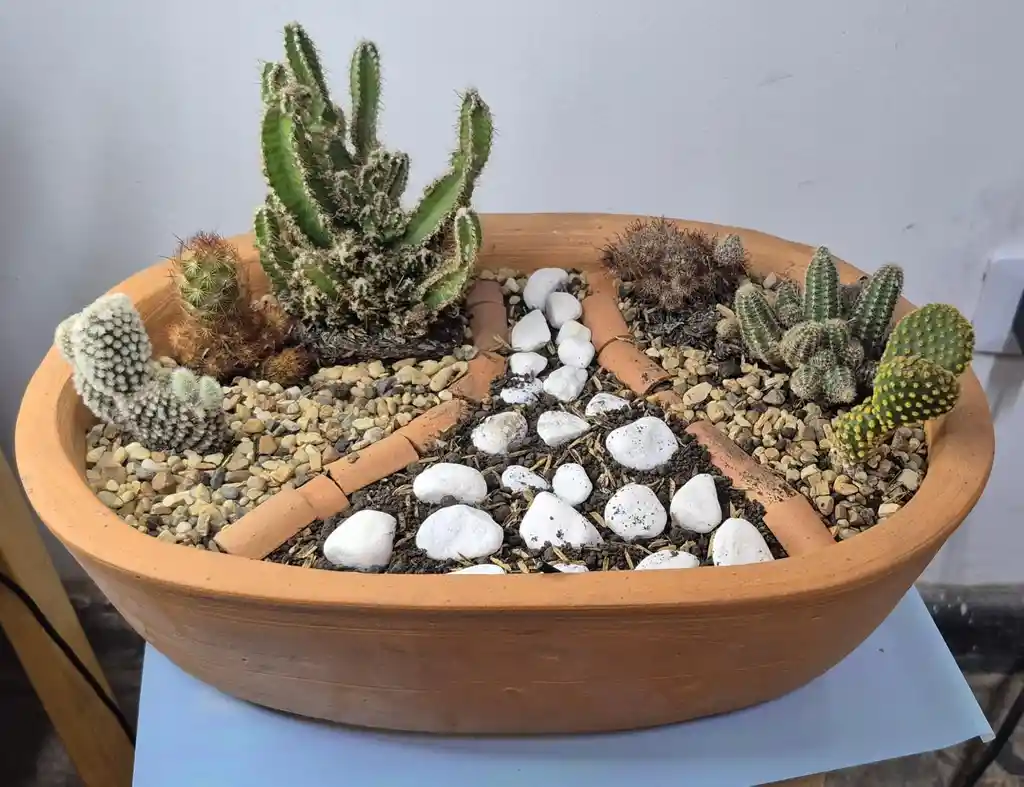 JARDINERO GRANDE DE CACTUS EN MATERA DE BARRO