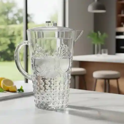 Jarra Acrílica 2 Litros Transparente con Tapa – Mundi Útil Refresca tus momentos con estilo La Jarra Acrílica con Tapa de Mundi Útil es perfecta para disfrutar agua, jugos o refrescos con la familia y amigos. Con capacidad de 2 litros, su diseño transparente y elegante realza cualquier mesa y combina funcionalidad con un toque moderno. - Duradera y resistente: Fabricada en acrílico libre de BPA. - Diseño ergonómico: Mango redondo y ergonómico con diseño exterior en alto relieve que facilita, su tapa acrílica ajusta perfectamente para mantener tus bebidas frescas y protegidas. - Tamaño ideal: Altura de 25 cm y diámetro superior de 14 cm, perfecta para tu nevera o mesa. Llévala contigo a un picnic, úsala en casa o en reuniones y disfruta cada bebida con elegancia y practicidad. Dale un toque de frescura a tu hogar con la Jarra Acrílica Mundi Útil 2L — ¡pide la tuya hoy y mantente siempre hidratado con estilo!