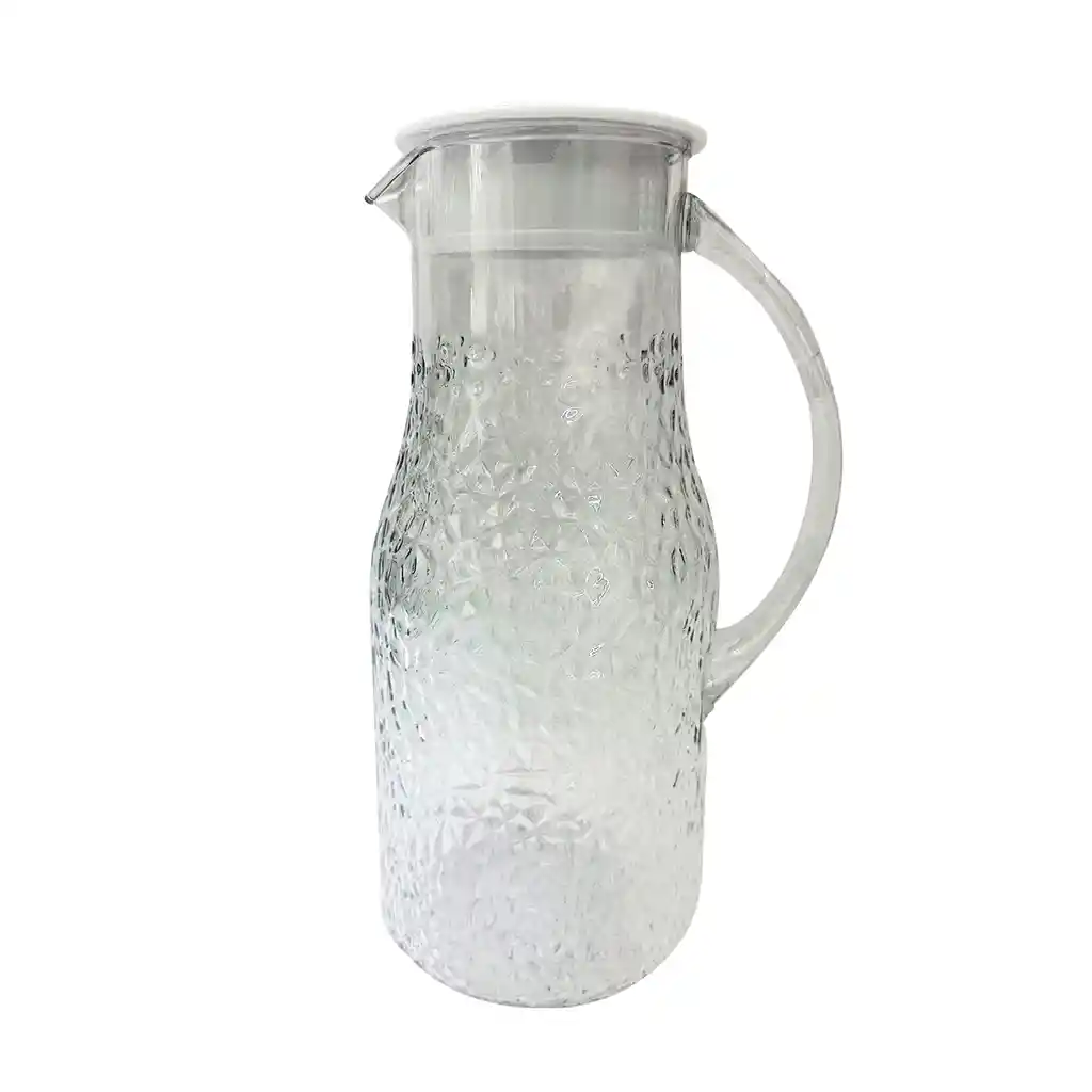 Práctica y resistente jarra plástica con diseño ligero, ideal para servir agua, jugos o refrescos en el hogar. Fácil de limpiar y perfecta para el uso diario.