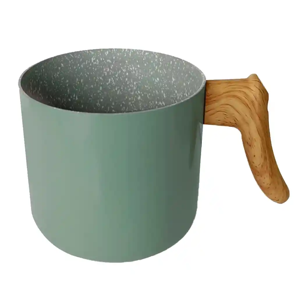 Fabricado en aluminio barnizado. Capacidad de 1 litros. Mango resistente al calor hasta 210°C. Interior antiadherente con diseño granito. Permite hervir agua de manera segura y elegante.. Material: Aluminio Tamaño CM (LargoxAnchoxAlto): Largo 18cm x Ancho 12cm x Alto 11cm