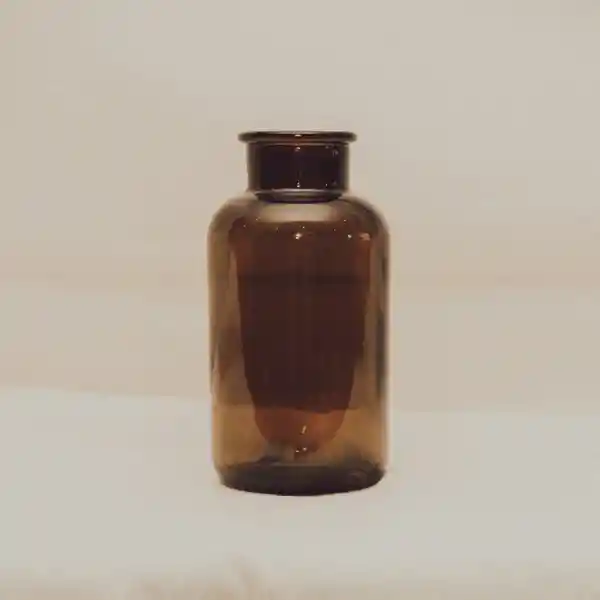 Jarrón en vidrio color ámbar. Medidas: 9x9x20 cms.