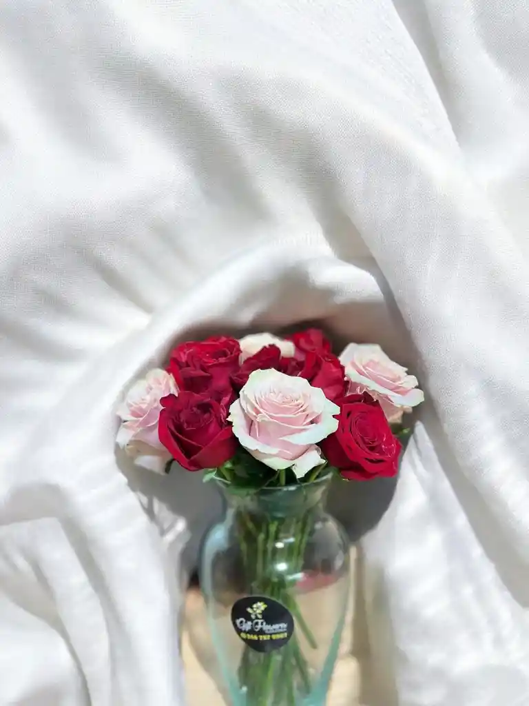 Jarron de 6 rosas rojas y 6 rosas rosadas aprox. Nota: La flor puede ser sustituida dependiendo la disponibilidad de color y del producto “Mensaje Personalizado” máximo de 30 caracteres (Dejar el mensaje en el chat, los comentarios no se previsualizan para la tienda por lo que si se dejan allí no podrá ser incluido).