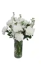 Un elegante jarrón con aproximadamente 6 claveles blancos, 3 rosa blancas con gypso y rusco , símbolo de pureza y gratitud. Perfecto para transmitir serenidad y aprecio en cualquier ocasión especial.Nota: La flor puede ser sustituida dependiendo de la disponibilidad de color y del producto."Mensaje Personalizado" máximo de 30 caracteres (Dejar el mensaje en el chat, los comentarios no se previsualizan para la tienda, por lo que si se dejan allí no podrá ser incluido).