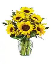 Jarron de 6 girasoles en forma de cascada con 14 varas de rusco . La flor puede ser sustituida dependiendo la disponibilidad de color y del producto “Mensaje Personalizado” máximo de 30 caracteres (Dejar el mensaje en el chat, los comentarios no se previsualizan para la tienda por lo que si se dejan allí no podrá ser incluido)