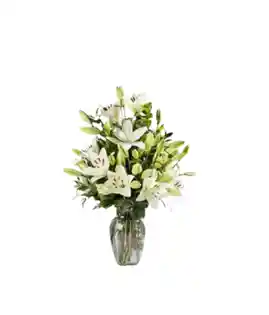 Jarron de aprox. 12 lirios con 10 varas de rusco. La flor puede ser sustituida dependiendo la disponibilidad de color y del producto “Mensaje Personalizado” máximo de 30 caracteres (Dejar el mensaje en el chat, los comentarios no se previsualizan para la tienda por lo que si se dejan allí no podrá ser incluido)
