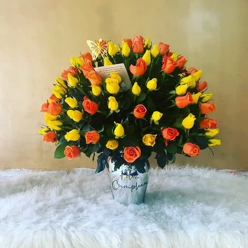 JARRON DE LUJO CON ESFERA DE ROSAS APROX 200 A 250 ROSAS