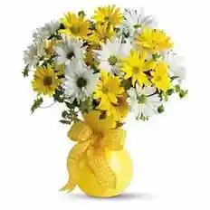Jarron de 10 varas de margarita amarilla y 10 varas de margarita blanca. La flor puede ser sustituida dependiendo la disponibilidad de color y del producto “Mensaje Personalizado” máximo de 30 caracteres (Dejar el mensaje en el chat, los comentarios no se previsualizan para la tienda por lo que si se dejan allí no podrá ser incluido)
