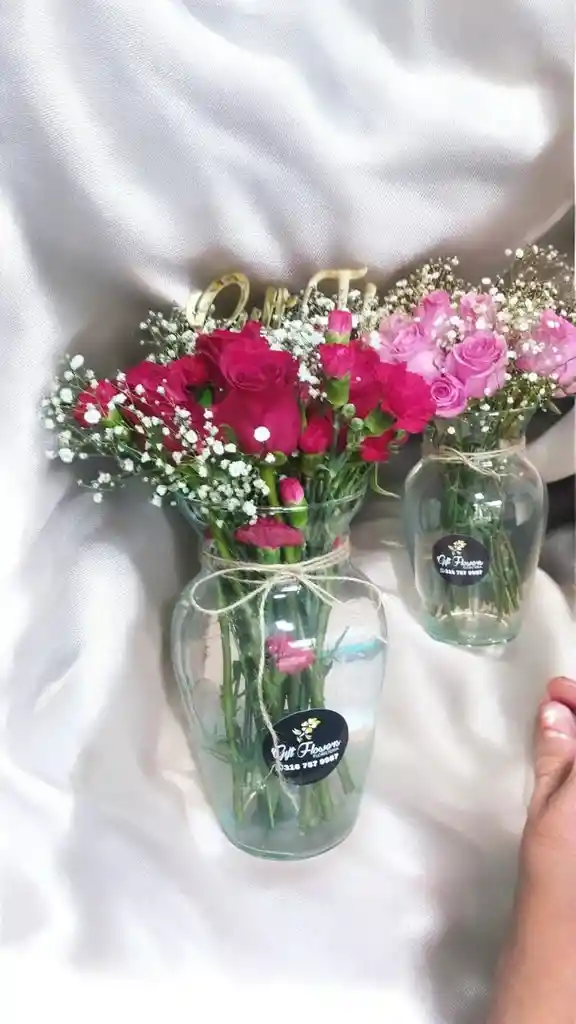 Jarrón de 12 rosas rosadas ó rojas acompañadas de gypsophila.Nota: La flor puede ser sustituida dependiendo la disponibilidad de color y del producto “Mensaje Personalizado” máximo de 30 caracteres (Dejar el mensaje en el chat, los comentarios no se previsualizan para la tienda por lo que si se dejan allí no podrá ser incluido).