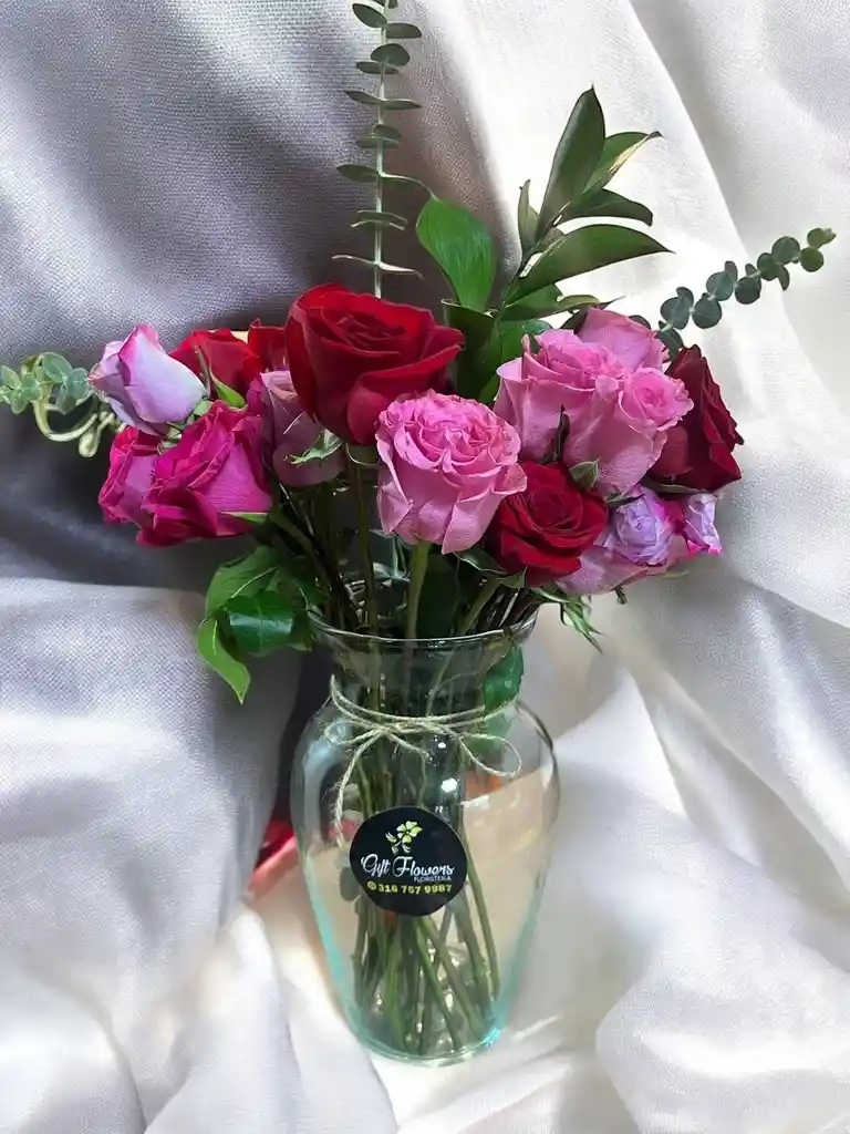 Jarron de rosas con rusco y eucalipto Nota: La flor puede ser sustituida dependiendo la disponibilidad de color y del producto “Mensaje Personalizado” máximo de 30 caracteres (Dejar el mensaje en el chat, los comentarios no se previsualizan para la tienda por lo que si se dejan allí no podrá ser incluido).