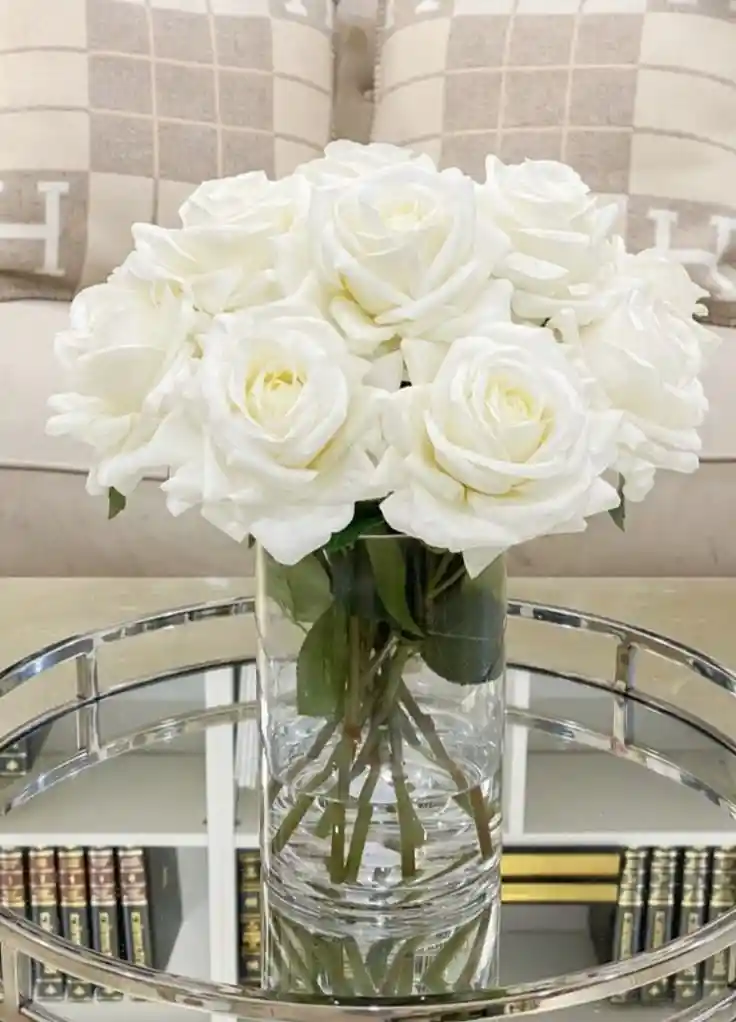 Este jarrón contiene 12 rosas blancas, reflejando pureza y elegancia. Perfecto para transmitir paz y sofisticación en cualquier ambiente.Nota: La flor puede ser sustituida dependiendo de la disponibilidad de color y del producto."Mensaje Personalizado" máximo de 30 caracteres (Dejar el mensaje en el chat, los comentarios no se previsualizan para la tienda, por lo que si se dejan allí no podrá ser incluido).