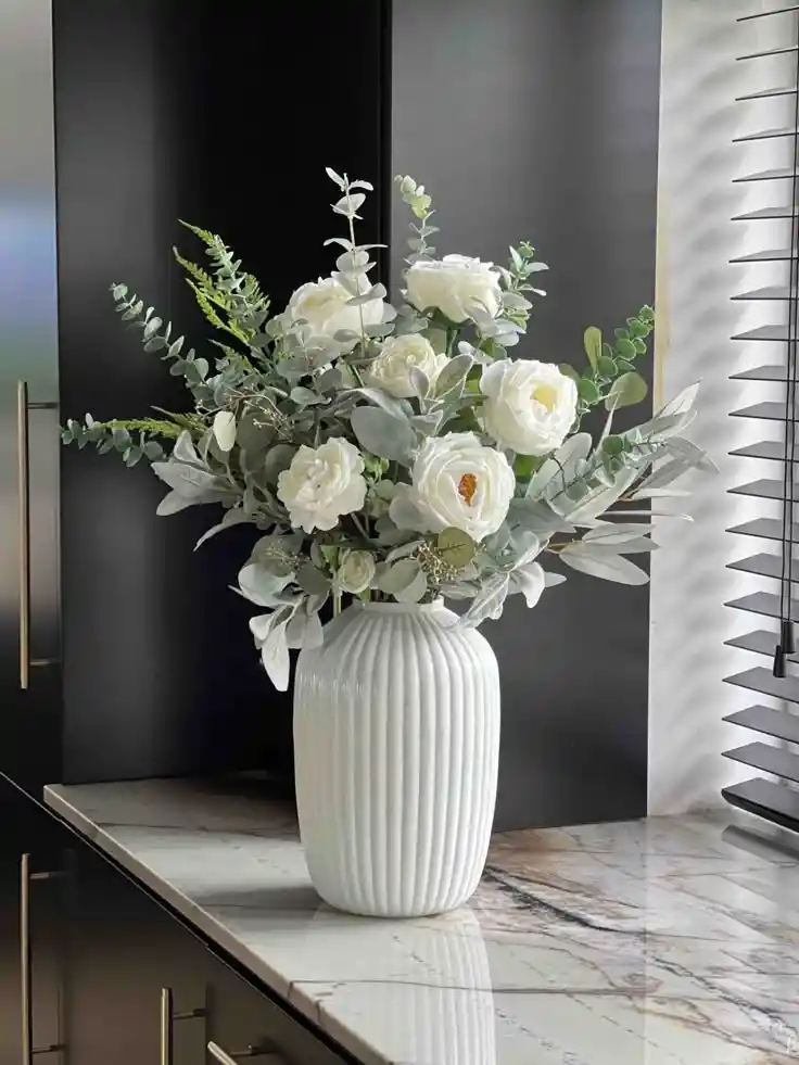 Jarrón de rosas blancas Un elegante jarrón con 12 rosas blancas que transmiten pureza y serenidad, ideal para cualquier ocasión especial. Nota: La flor puede ser sustituida dependiendo de la disponibilidad de color y del producto. "Mensaje Personalizado" máximo de 30 caracteres (Dejar el mensaje en el chat, los comentarios no se previsualizan para la tienda, por lo que si se dejan allí no podrá ser incluido).