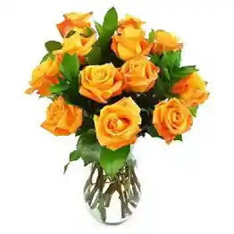 Jarron de 12 rosas naranjas con 10 varas de rusco. La flor puede ser sustituida dependiendo la disponibilidad de color y del producto “Mensaje Personalizado” máximo de 30 caracteres (Dejar el mensaje en el chat, los comentarios no se previsualizan para la tienda por lo que si se dejan allí no podrá ser incluido)