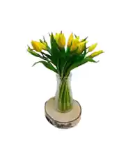 Jarron con 12 tulipanes amarillos . La flor puede ser sustituida dependiendo la disponibilidad de color y del producto “Mensaje Personalizado” máximo de 30 caracteres (Dejar el mensaje en el chat, los comentarios no se previsualizan para la tienda por lo que si se dejan allí no podrá ser incluido)