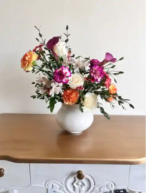 Jarrón artesanal en cerámica, con diseño exclusivo de Primavera Floral Precio incluye solo el jarrón En nuestra colección "Arreglos" puedes encontrar arreglos que incluyen este jarrón, como el Otoño y el Amanecer