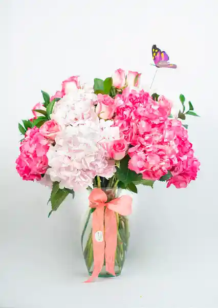 Jarron samaritano 6 hort fucsia - 6 hort rosada - 12 rosa rosada confetti - mariposa decorativa