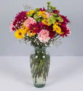 jarron de margaritas surtidas Con Mensaje Personalizado, máximo de 30 caracteres (Dejar el mensaje en el chat, los comentarios no se previsualizan para la tienda por lo que si se dejan allí no podrá ser incluido)