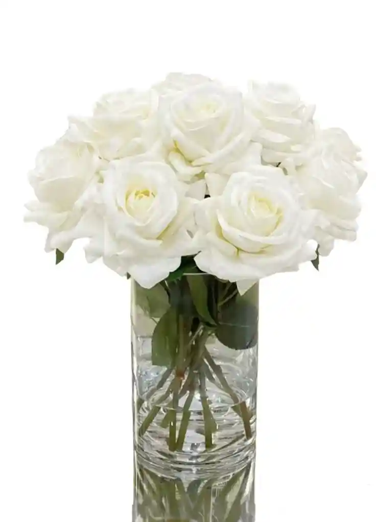 Este jarrón contiene 12 rosas blancas, reflejando pureza y elegancia. Perfecto para transmitir paz y sofisticación en cualquier ambiente.Nota: La flor puede ser sustituida dependiendo de la disponibilidad de color y del producto."Mensaje Personalizado" máximo de 30 caracteres (Dejar el mensaje en el chat, los comentarios no se previsualizan para la tienda, por lo que si se dejan allí no podrá ser incluido).