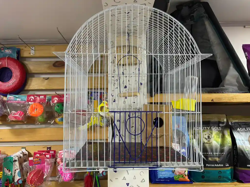 Jaula de pajaro con accesorios incluidos, viene con Jaula de Madera, dispensador de comida, dispensador de agua, y posador