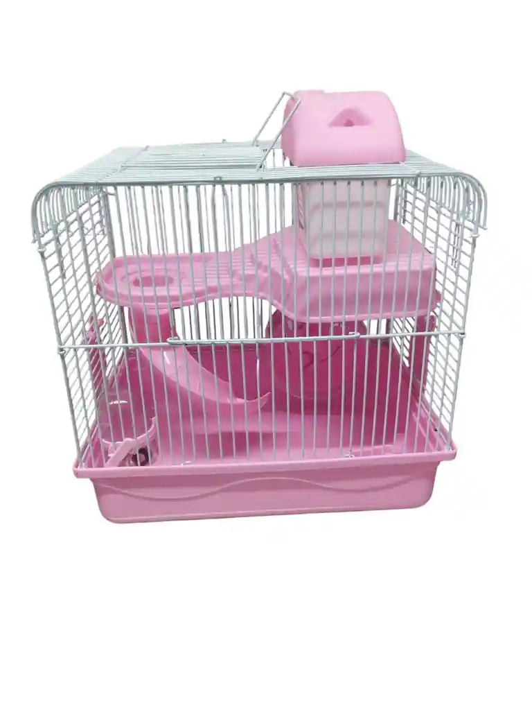 jaula para con su respectiva rueda, casita, comedero y bebedero