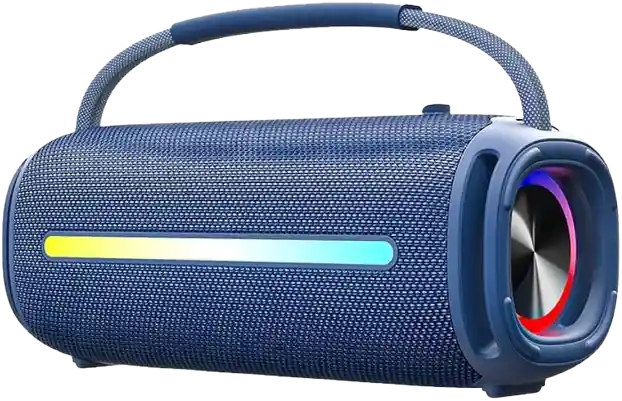 Parlante inalámbrico portátil tipo boombox con diseño robusto y moderno, ideal para disfrutar música con potencia y estilo. Cuenta con luz LED frontal multicolor que le da un toque dinámico y llamativo, además de un asa superior resistente que facilita su transporte. Su estructura está pensada para acompañarte tanto en interiores como en exteriores.