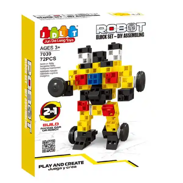 Bolsa Con 72 Piezas. Bloques en Variados Colores y Diseños Para Armar un Robot o un Carro 2 en 1 (Instrucciones Incluidas) Permite Además a Los Niños el Desarrollo de su Creatividad Armando Interminables Figuras. El Juego Con Bloques es Esencial Para el Desarrollo de Habilidades Básicas