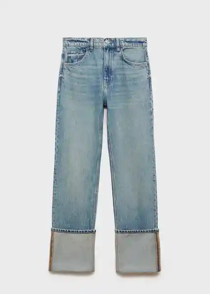 Bajo Con Vuelta, Cierre de Cremallera y Botón, Cinco Bolsillos, Diseño Largo, Diseño Recto, Largo Interior 78 cm, Tejido de Algodón Estilo Tejano Vaquero, Tiro Medio, Trabillas - 77014028_Tm.