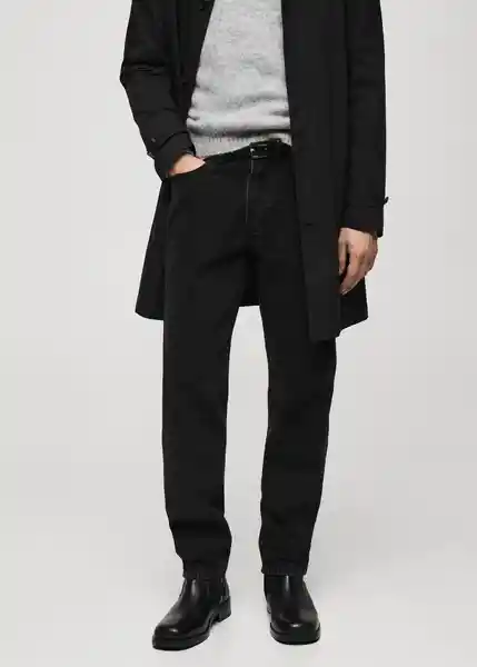 Bolsillo Portamonedas, Cierre de Cremallera y Botón, Color Negro, Dos Bolsillos de Parche en la Parte Posterior, Dos Bolsillos Laterales, el Modelo Mide 183 cm y Lleva Una Talla 42, Straight-Fit, Tejido de Algodón Estilo Tejano Vaquero, Trabillas Para Cinturón - 77054441_Tn.