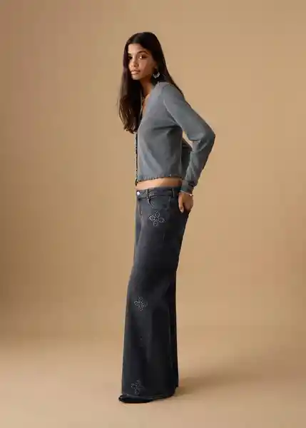 Cierre de Botón y Cremallera Diseño Wideleg Dos Bolsillos de Parche en la Parte Posterior Dos Bolsillos Laterales Fantasía Tachuelas Tejido de Algodón Tiro Cintura Low Waist Trabillas Para Cinturón - 27071512_Tn.