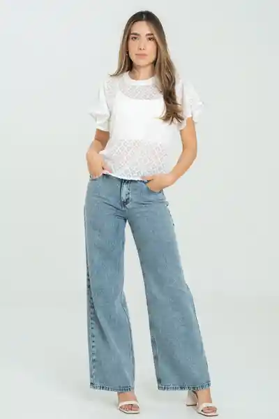 En Denim Rígido Tono Medio Con Manualidad Tiro Alto Cinco Bolsillos.