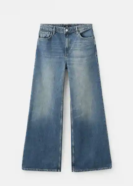Cierre Delantero de Cremallera y Botón Cinco Bolsillos Diseño Largo Diseño Wide Leg Tejido de Algodón Estilo Tejano Vaquero Tiro Alto Trabillas - 27051343_To.