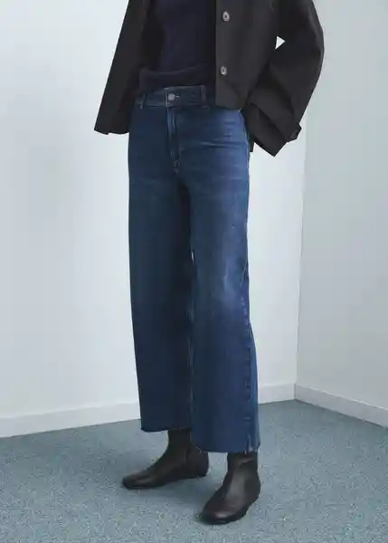Cierre Delantero de Cremallera y Botón Diseño Culotte Disponible Plus Dos Bolsillos de Parche en la Parte Posterior Largo Interior 72 cm Tejido de Algodón Estilo Tejano Vaquero Tejido Elástico Tiro Alto Trabillas - 27011233_To.