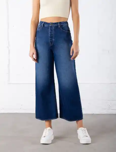 Jean Culotte Tiro Alto Azul Índigo Oscuro Talla 4 Mujer Naf Naf