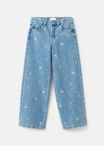 Bordado de Flores Cierre de Botón y Cremallera Cinco Bolsillos Diseño Largo Diseño Wide Leg Tejido 100% Algodón Tiro Cintura Regular Waist Trabillas Para Cinturón - 27064416_Tm.