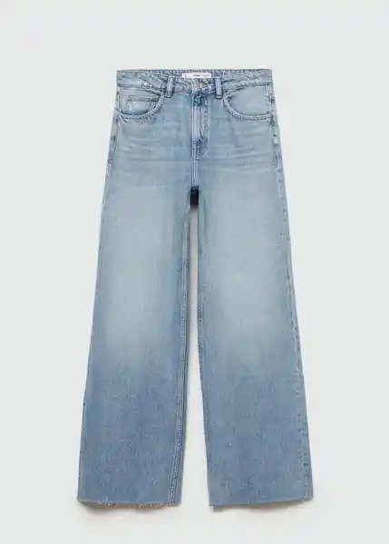 Bajo Deshilachado, Cierre Delantero de Cremallera y Botón, Cinco Bolsillos, Diseño Largo, Diseño Wideleg, Largo Interior 85 cm, Tejido de Algodón Estilo Tejano Vaquero, Tiro Medio, Trabillas - 77044056_Tm.
