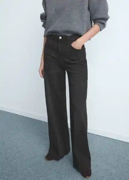 Cierre Delantero de Cremallera y Botón Cinco Bolsillos Diseño Largo Diseño Wide Leg Disponible Plus Largo Interior 83 cm Tejido de Algodón Estilo Tejano Vaquero Tejido Elástico Tiro Alto Trabillas - 27021196_Tn.