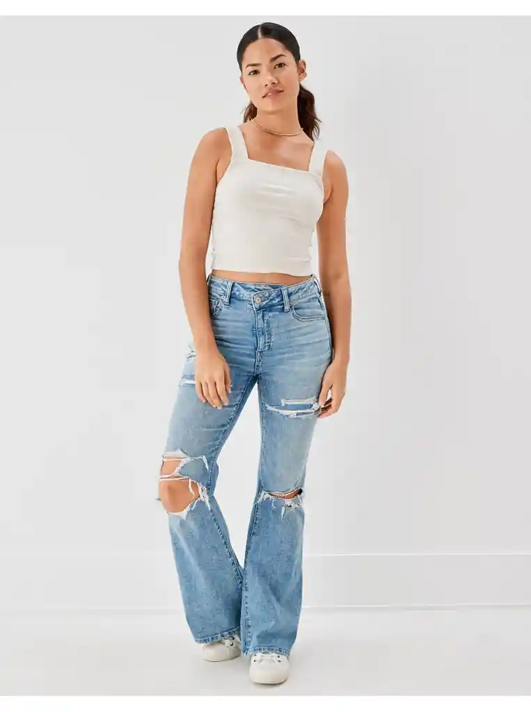 Canaliza Esas Vibras Retro Con Tiro Súper Alto Pierna Ajustada y la Cantidad Justa de Destalles. 71% Algodón 21% Rayón (Viscosa) 7% Poliéster 1% Elastano.