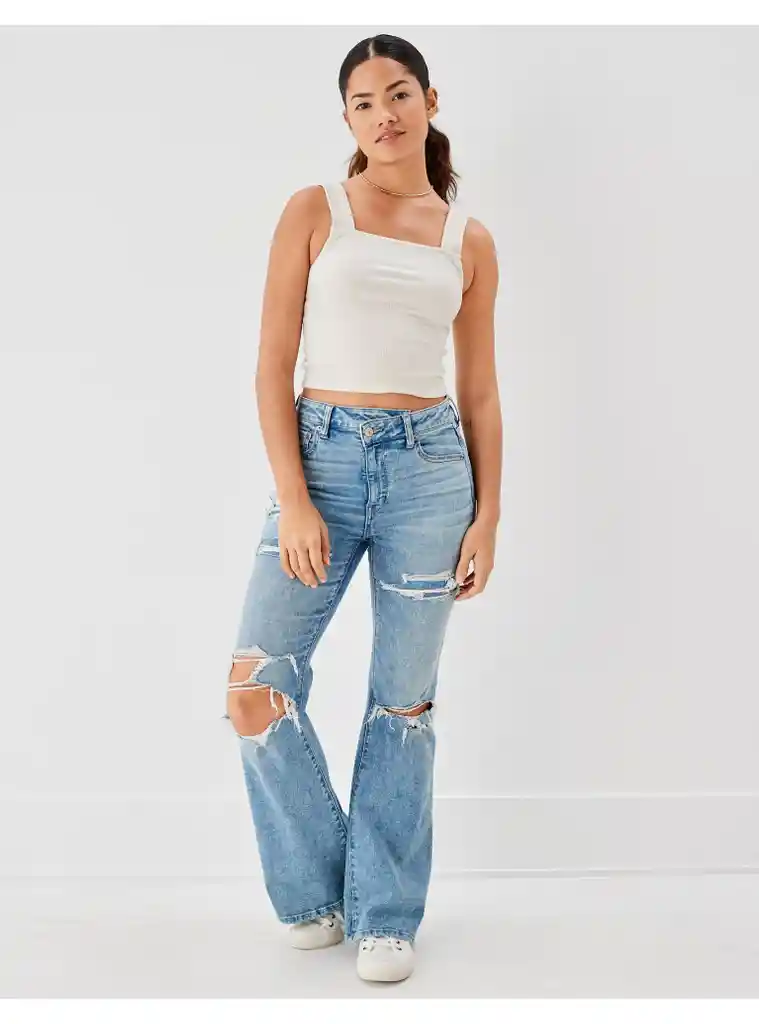 Canaliza Esas Vibras Retro Con Tiro Súper Alto Pierna Ajustada y la Cantidad Justa de Destalles. 71% Algodón 21% Rayón (Viscosa) 7% Poliéster 1% Elastano.