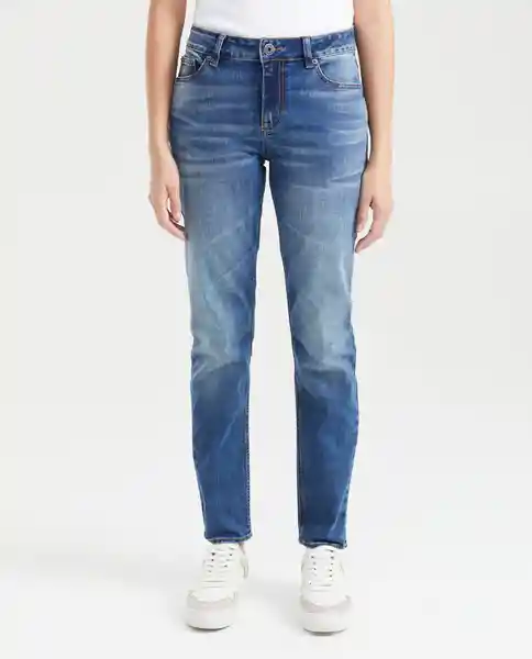 Para Mujer, Cosmo: High Rise, Bota Skinny. Color Azul, Tono Medio.Silueta de Tiro Alto Con Bota Ajustada (13 - 14 cms).Pretina Tradicional Con Botón Metálico, Aletilla Con Botones Expuestos, Bolsillos Delanteros, Relojera, Garra de Cuero en la Pretina Posterior, Bolsillos Traseros de Parche y Bota Ajustada.Lavado Con Desgaste Medio, Efecto Dirty, Bigotes e Iluminaciones Contrastadas.Elaborado en Denim Stretch, (40% a 90% de Elongación).Peso: 460 g. Ean - 431G014AZU184140 PLU- 1111133071948.