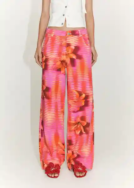 Bolsillo Portamonedas, Cierre de Cremallera y Botón, Diseño Estampado, Diseño Largo, Diseño Wideleg, Dos Bolsillos de Parche en la Parte Posterior, Dos Bolsillos Delanteros, Estampado de Flores, Estampado de Rayas, Tejido de Algodón Estilo Tejano Vaquero, Tiro Medio, Trabillas - 77080637_85.