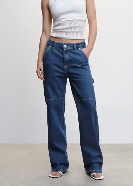 Cierre de Cremallera y Botón Cinco Bolsillos Costuras Decorativas Diseño Largo Diseño Recto Dos Bolsillos Cargo Largo Interior 80 cm Tallaje Más Grande de lo Habitual Tejido de Algodón Estilo Tejano Vaquero Tiro Medio Trabillas - 47061313_To.