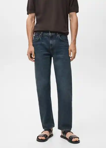Bolsillo Portamonedas a la Altura de la Cadera en la Parte Posterior Cierre Delantero de Cremallera y Botón Dos Bolsillos de Parche en la Parte Posterior Dos Bolsillos Delanteros el Modelo Mide 185 cm y Lleva Una Talla M Lavado Oscuro Straight-Fit Tejido 100% Algodón Trabillas Para Cinturón - 17005152_To.